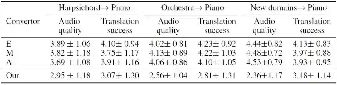 表 1:转换任务的 MOS 分数(均值 ± 标准差)。