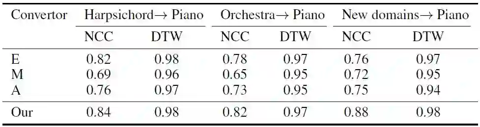 在本文提出的架构中,研究者采取单一的通用编码器,并将其应用于所有的输入。除了能训练较少神经网络的优势之外,这还能使我们把在训练期间没听过的音乐域转化到任意曾接触的音乐域中去。
