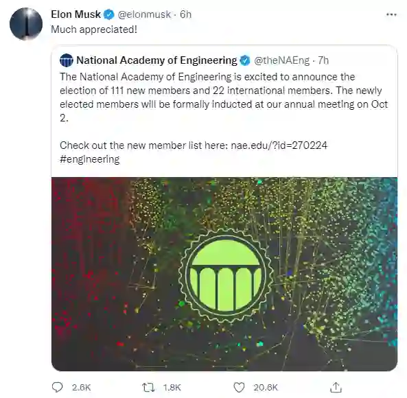 10日,美国工程院发布2021年度国家工程院增补院士名单,其中,特斯拉以及SpaceX CEO埃隆·马斯克入选。入选原因为,在可重复使用的运载火箭和可持续运输和能源系统的设计、工程、制造和运营方面取得了突破。马斯克转发推特文章,表示“万分感谢”。此外,微软CEO萨蒂亚·纳德拉等人也一并入选。(新浪科技)