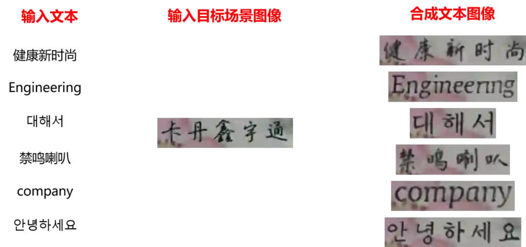 相比于传统的数据合成算法,Style-Text 可以实现特殊背景下的图片风格迁移,只需要少许目标场景图像,就可以合成大量数据,效果展示如下: