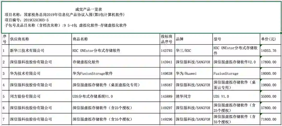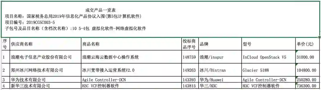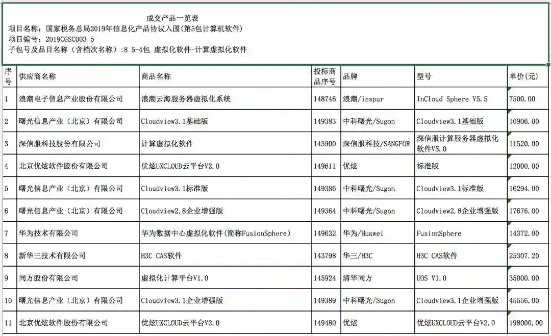 国家税务总局2019年信息化产品协议入围(第5包计算机软件)成交公告