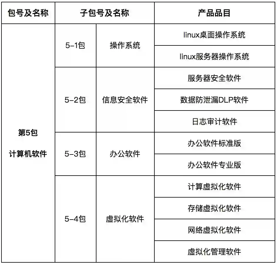 本次协议入围采购范围共计9类,其中6类产品/服务(服务器、网络设备、安全设备、视频会议系统及会议室音频系统、计算机软件、云计算服务)面向原厂商入围采购,3类产品(多功能一体机、扫描仪、投影仪)面向电商入围采购,具体分包情况如下: