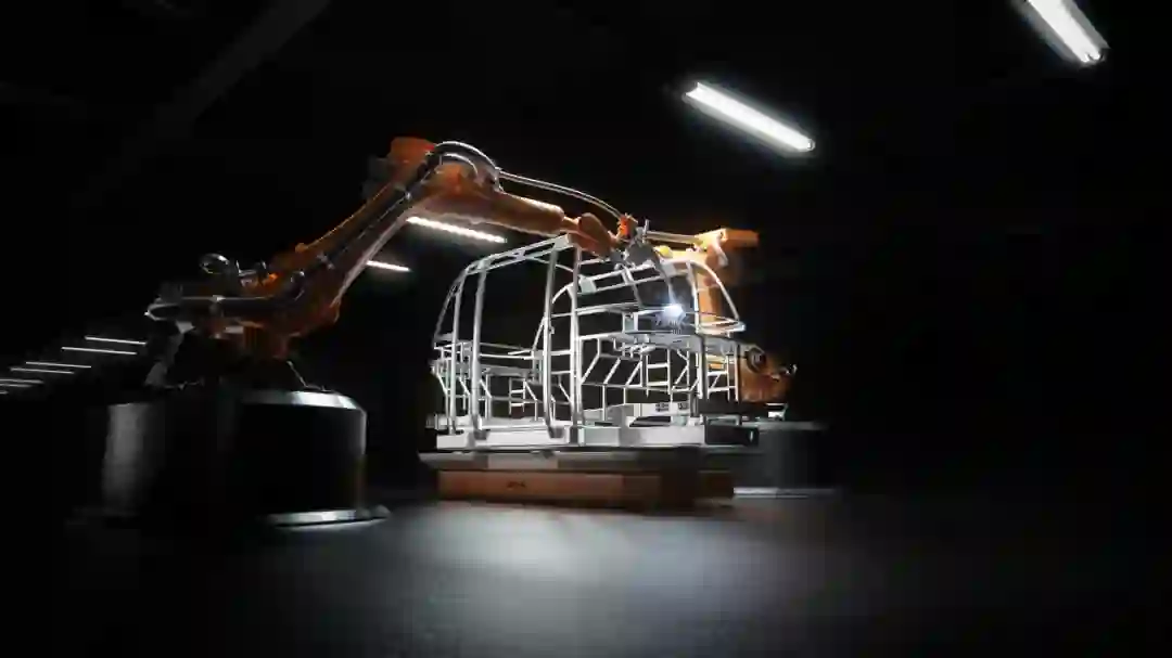 此外,PIX Moving 还自主研发了无模具成型 RTM,通过数台六轴工业机器人 + 多种工具头,依据算法生成的数字化工艺文件相互协作,可对金属板材进行任意成型。这意味着可以在滑板式底盘要面对的定制化生产中,能够脱离模型带来更大的成本优势,即使是低需求量的产品也能保证利润。