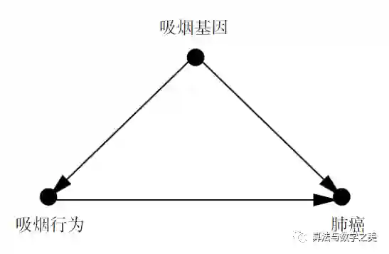 如图1 所示,费舍尔认为吸烟基因是吸烟行为和肺癌的混杂因子(就当时而言只是一个纯粹的假设)。