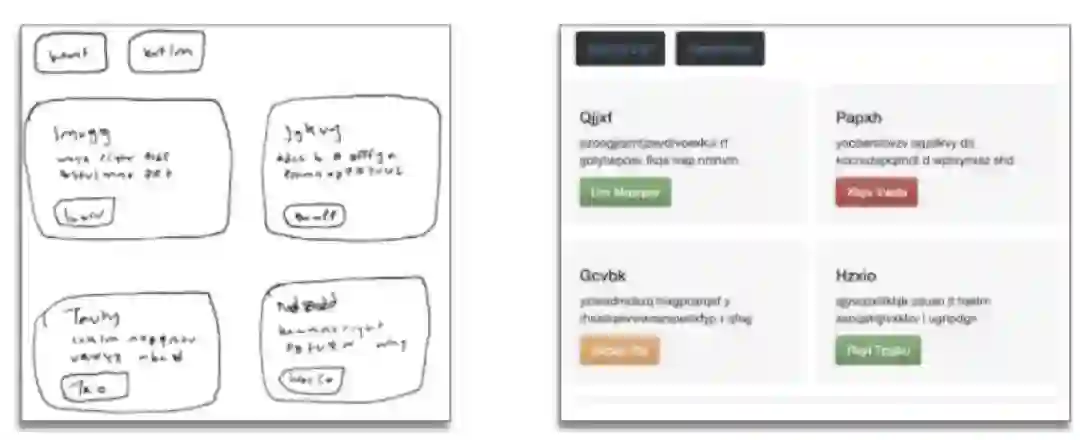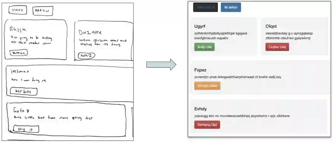 我所解决的问题属于一个应用更广泛的任务,即程序合成,自动生成源代码。虽然大部分程序合成都涉及自然语言规范或执行跟踪生成的代码,但在我的例子中,我可以使用我的源图像 (手工绘制的线框图)。