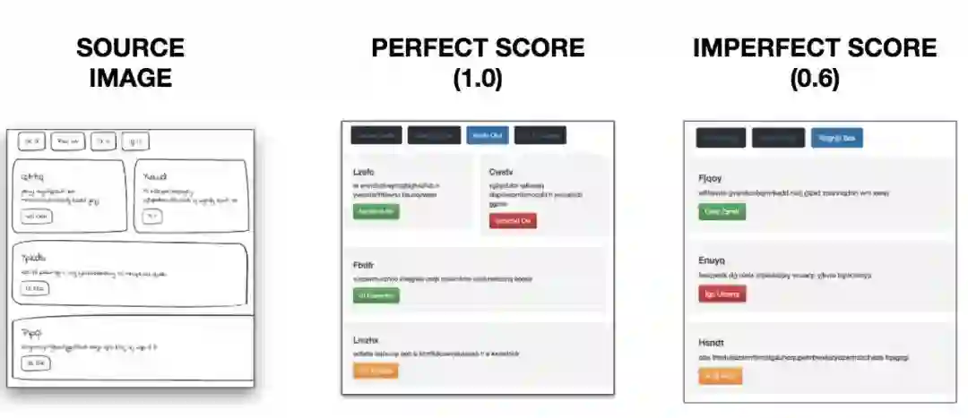 实际上,BLEU 会将生成的文本和引用文本的 n-gram 序列进行比较,得到一份精确的对比表格。它非常适合这个项目,因为它会考虑到生成的 HTML 中的实际元素,以及它们之间的关系。