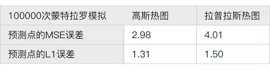 可以看出,在标注存在拉普拉斯形式的误差时 ,并不应该给标注点设置拉普拉斯热图。因为这种情况下,拉普拉斯热图的误差 其实要大于 高斯热图,因此采用高斯热图才是实际上更好的选择。这也就解释了第二部分中,采取拉普拉斯热图后效果不升反降的原因了。