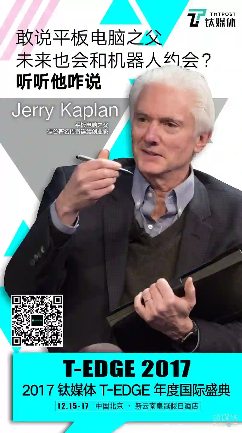 12月15-17日,Jerry Kaplan将空降北京,在2017钛媒体T-EDGE年度国际盛典上,分享其对于AI如何引领产业变革的思考和观点,与你一起直面 AI 的挑战与机遇。