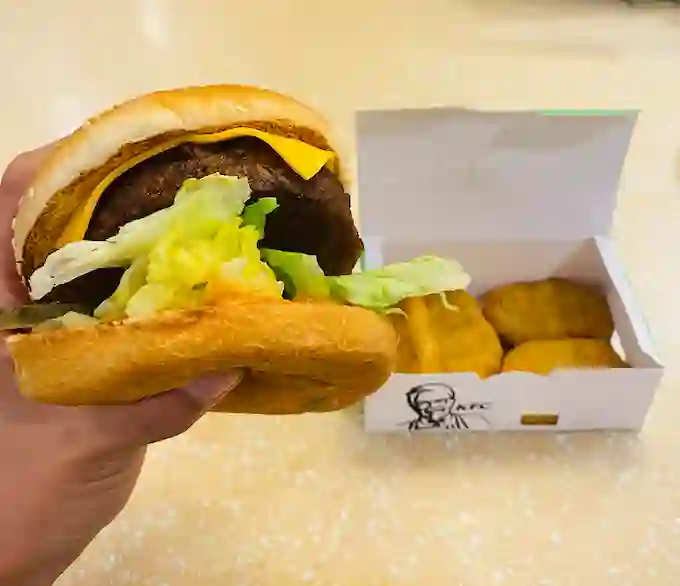 肯德基上线植世代汉堡和鸡块的时候,超神经的多位小伙伴曾买来尝鲜。从风味上来说,植物牛肉的味道跟真肉相差无几,加上汉堡多种调料和配菜的味道,因此并不能单从味道上做区分。