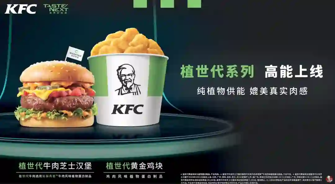 新品系列被称为「植世代」,共包括两款植物肉食品:牛肉芝士汉堡(牛肉风味的植物蛋白制品)及黄金鸡块(鸡肉风味的植物蛋白制品)。