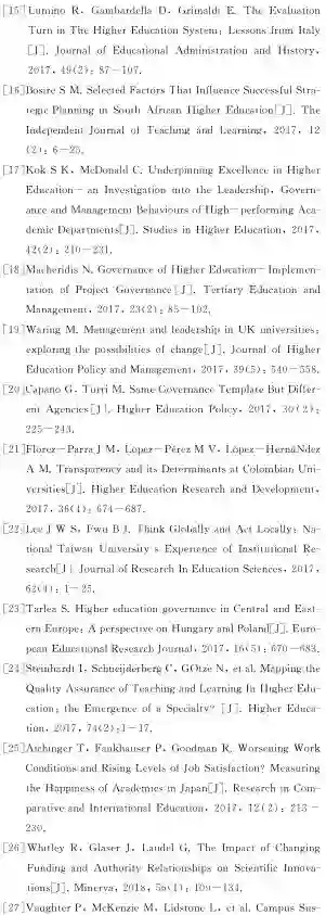 基金项目:教育部哲学社会科学研究重大课题攻关项目“现代大学治理结构中的纪律建设、德治礼序和权力配置协调机制研究”(项 目 号:15JZD044 );国 家 留 学 基 金 委 ( CSC )项 目(201706040102 )。