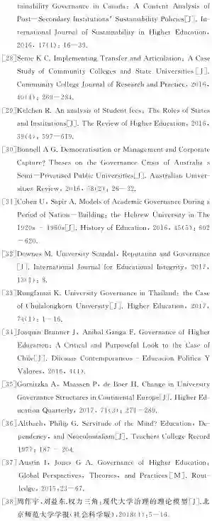 3.夯实大学治理研究的实证基础。规范的研究方法是解读大学治理的重要工具。大学治理由于其复杂性,许多概念不易操作化,因此在相关研究中时常需要采用“理想类型”(ideal type)的研究方法进行相对宏观理论阐释。但仅使用理论范式不足以解读大学治理的微观密码,国外大学治理研究在微观领域积累了大量实证研究经验。其中有大量实证研究采取了混合研究策略,采用量化方法和质性方法相结合的方式,对大学治理进行了特定解读。借鉴和吸收这些混合研究策略,在未来研究中将量化研究与质性研究结合起来,是进一步推动大学治理研究的方法论基础。