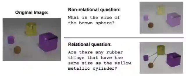 视觉推理指的是让神经网络回答根据照片提出的问题。例如,「照片中有和黄色的金属圆柱的尺寸相同的橡胶物体吗?」这样的问题对于机器是很困难的,直到最近,这类问题的回答准确率才达到了 68.5%。