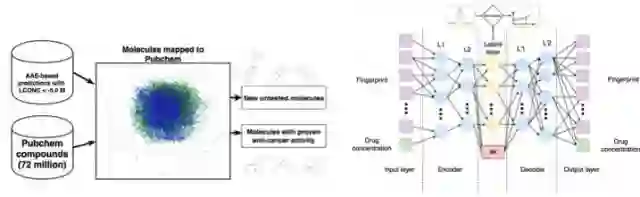 简单来说,在对抗自编码器(AAE)的帮助下,我们可以学习药物分子的潜在表征,并用来搜索新的药物结构。该项研究中,研究者发现了 69 个分子,且有一半的分子可用来治疗癌症和其它一些比较严重的疾病。
