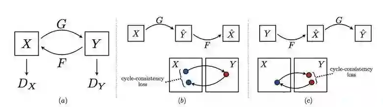 该论文的主要想法是训练两对生成器-判别器模型以将图像从一个领域转换为另一个领域,在这过程中我们要求循环一致性。即在序列地应用生成器后,我们应该得到一个相似于原始 L1 损失的图像。因此我们需要一个循环损失函数(cyclic loss),它能确保生成器不会将一个领域的图像转换到另一个和原始图像完全不相关的领域。