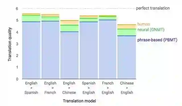关键结果:与人类翻译准确率的差距缩小了 55-85%(研究者使用 6 个语言对的评估结果)。但是该模型如果没有谷歌的大型数据集,则很难复现这么优秀的结果。
