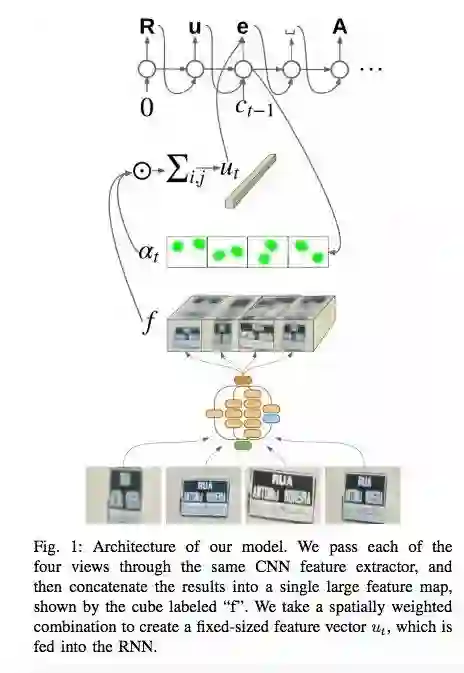 为了识别标志,网络最多使用 4 张图片。特征通过 CNN 提取,在空间注意力(考虑像素坐标)的帮助下缩放,最后结果被馈送至 LSTM。
