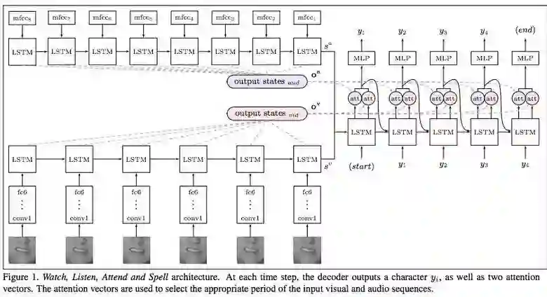 该数据集包含 10 万个音频、视频语句。音频模型:LSTM,视频模型:CNN + LSTM。这两个状态向量被馈送至最后的 LSTM,然后生成结果(字符)。
