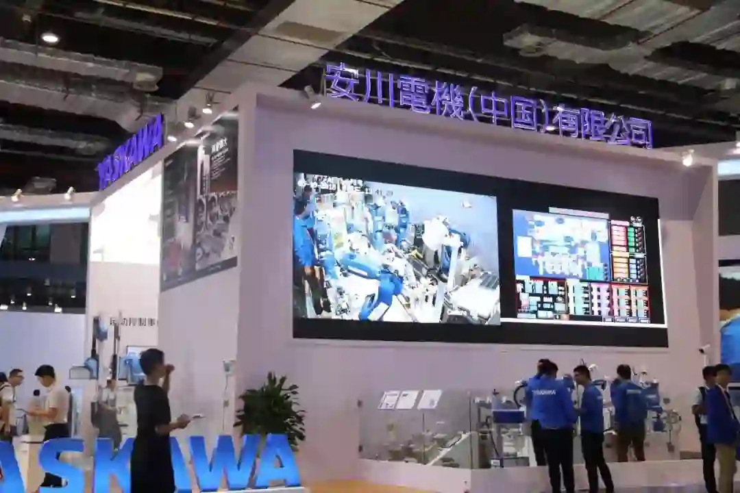 安川机器人的展台一直都秉承同一种风格。