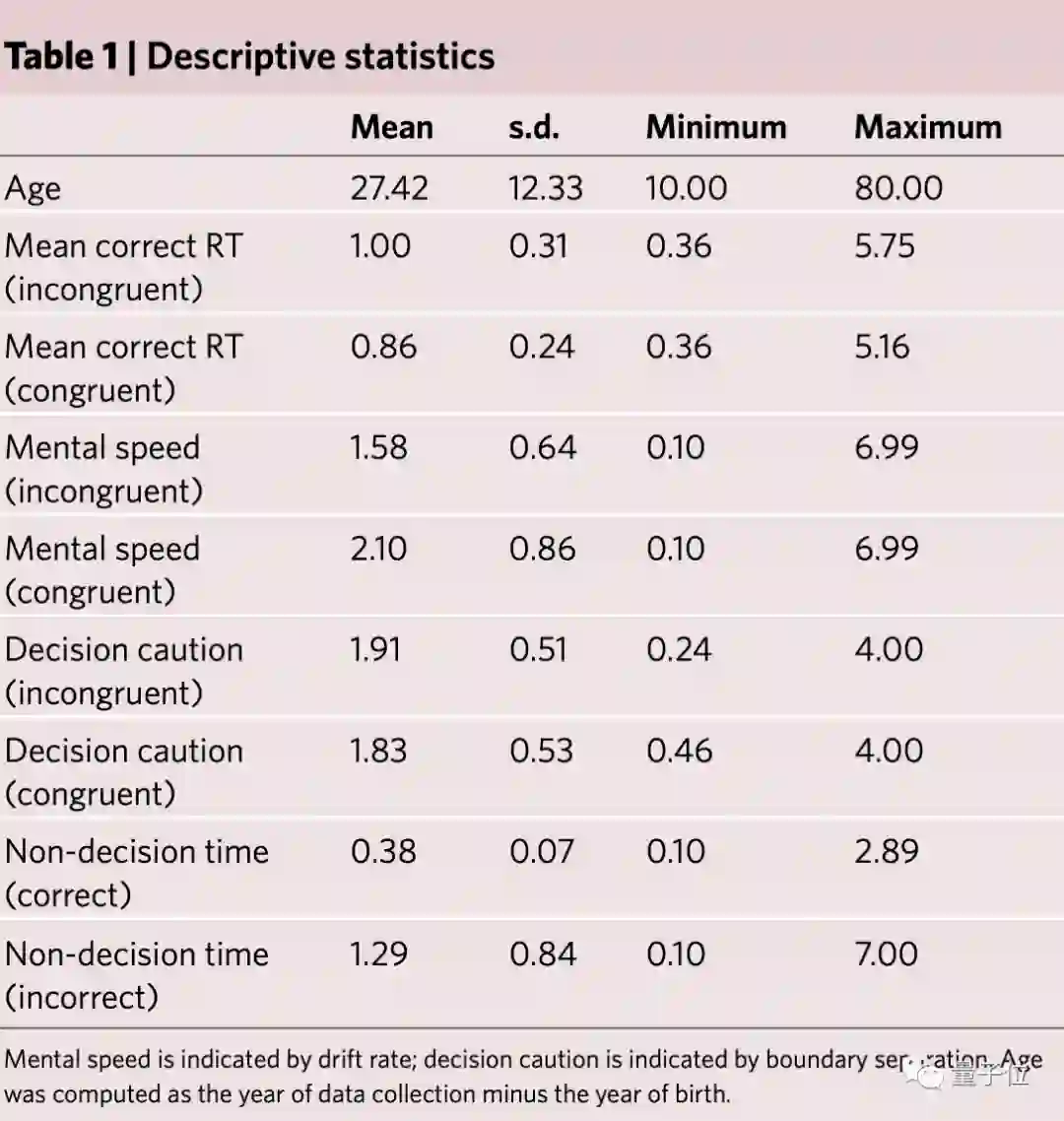 于是,本次研究团队另辟蹊径,只针对其中参与者年龄性别等统计特征、反应时间和分类准确性数据做了分析。