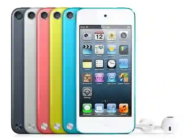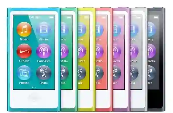 2012年9月,苹果终于更新了一波产品线,发布了iPod nano 7和iPod touch 5,前者变得更加轻薄,又恢复到iPod nano的长条形状,加入了home键和蓝牙的支持,后者变成了类似iPhone 5的造型,由不锈钢后壳变为铝质后盖,拥有了更加多的配色。