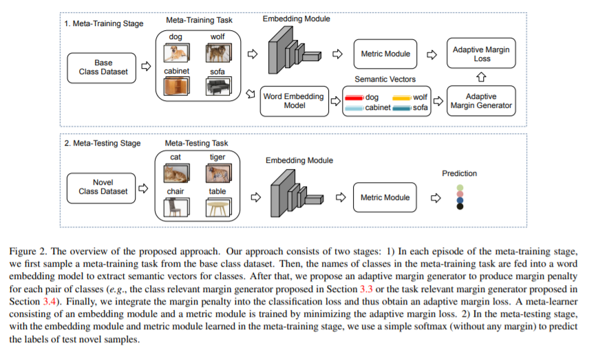 小样本学习(FSL)近年来引起了越来越多的关注,但仍然具有挑战性,因为学习从少数例子中归纳的固有困难。本文提出了一种自适应间隔原则,以提高基于度量的元学习方法在小样本学习问题中的泛化能力。具体地说,我们首先开发了一个与类相关的加性边缘损失算法,该算法考虑了每对类之间的语义相似性,从而将特征嵌入空间中的样本从相似的类中分离出来。此外,我们在抽样训练任务中加入所有类别之间的语义上下文,并开发了与任务相关的附加间隔损失,以更好地区分不同类别的样本。我们的自适应间隔方法可以很容易地推广到更现实的广义FSL设置。大量的实验表明,在标准FSL和通用FSL设置下,所提出的方法可以提高现有基于度量的元学习方法的性能。