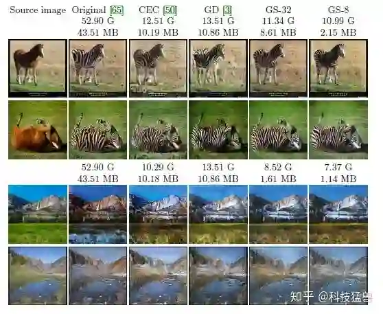 在winter-to-summer这个数据集上,GS-8可以压缩31倍之多。下图展示了一些可视化实验结果: