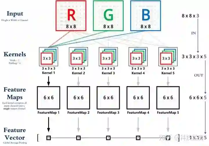 更有甚者使用二值神经网络进一步减小参数量所占的位数(权值被限制为{-1, 1}或{-1, 0, 1}),后文有论文的链接,有空再专门介绍这个方法吧。下面简单介绍下参数量的计算方法: