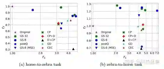 它们分别代表model size的压缩比,计算量的压缩比,结果FID的优化度。