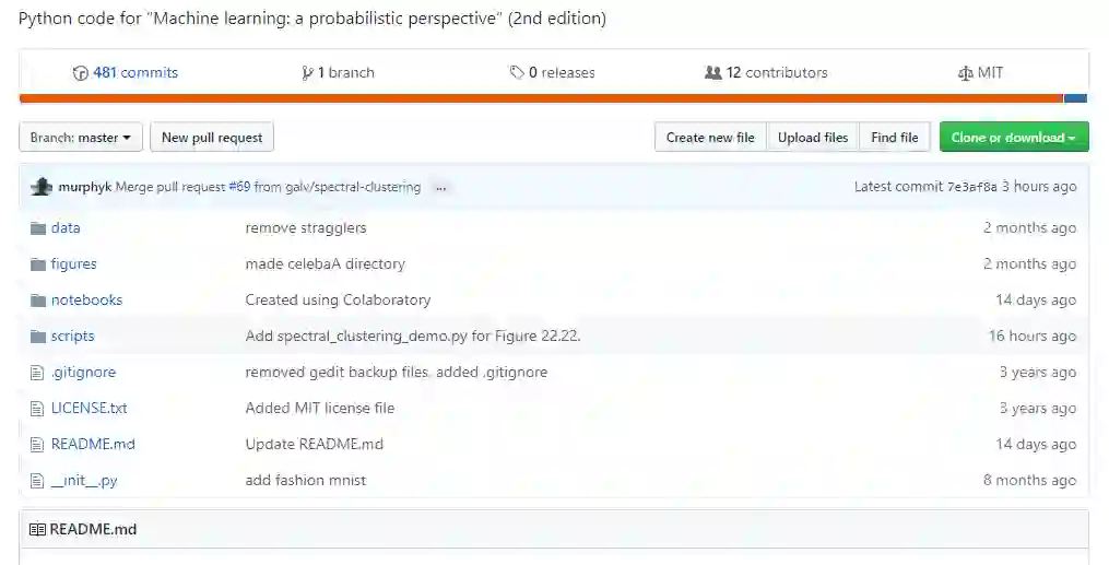 【导读】谷歌研究员Kevin Patrick Murphy撰写的经典机器学习图书,由MIT出版社出版,《Machine Learning: a Probabilistic Perspective》,自2012年发行以来就奉为经典机器学习书目。本书内容完整,讲解详细,便于阅读,方便工程使用。最近作者在Github上发布了关于本书的Python代码,更加方便使用!本文附带1098页pdf下载。