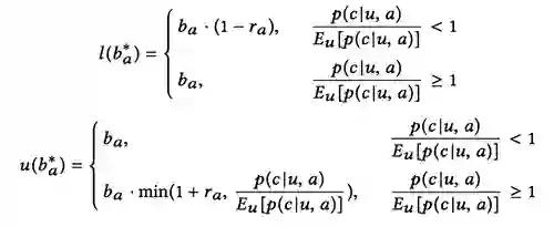 从而,该算法竞价优化的原则是:对于转化率升高的流量,提升其竞价来帮助广告主竞得优质流量;对于转化率下降的流量,降低竞价从而节约在劣质流量上的成本。出于调价的安全考虑,该算法设定了固定的调价范围参数,保证广告主的调价不过高或者过低,并以此得出调价的上界和下界