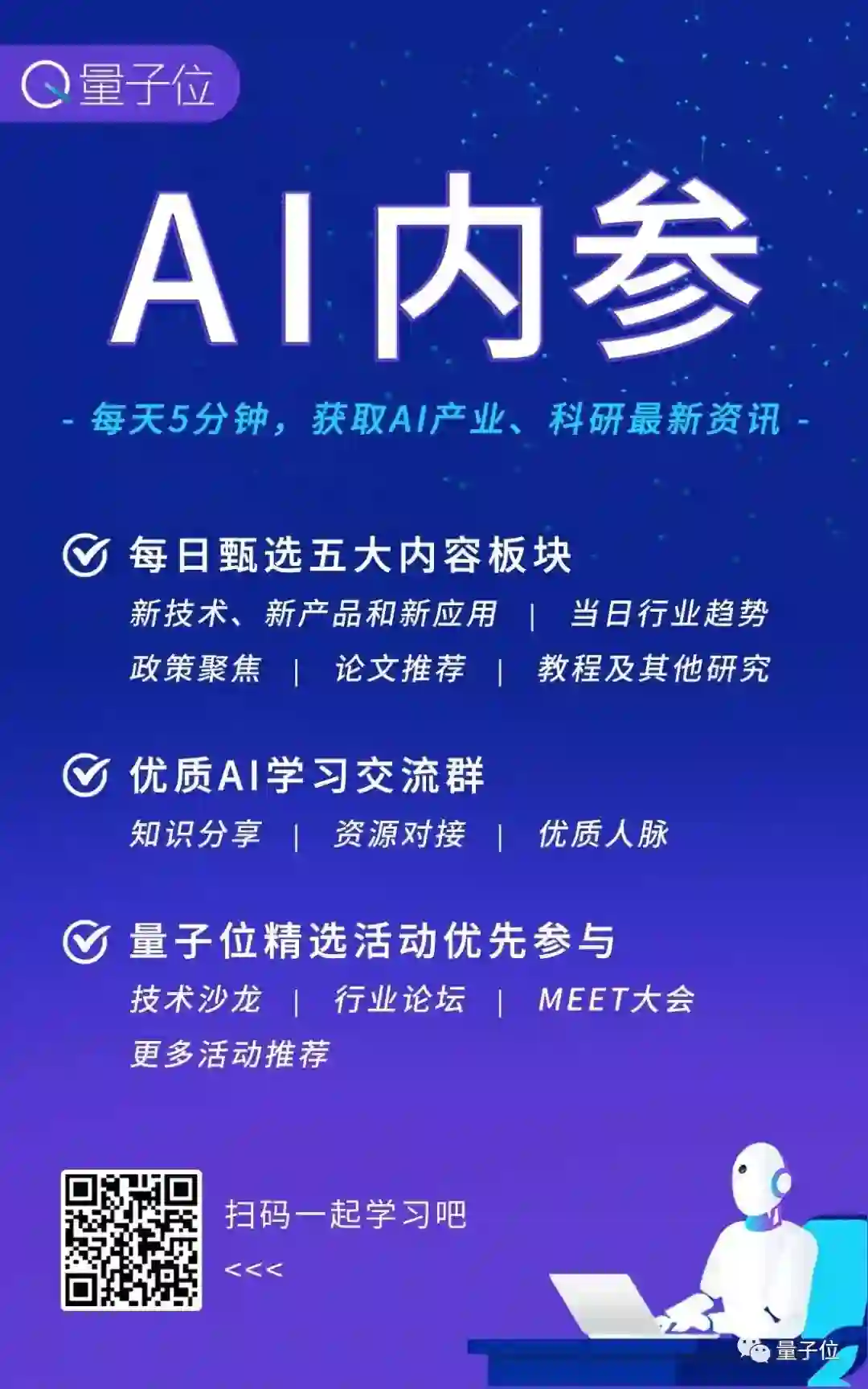 每个工作日,量子位AI内参精选全球科技和研究最新动态,汇总新技术、新产品和新应用,梳理当日最热行业趋势和政策,搜索有价值的论文、教程、研究等。