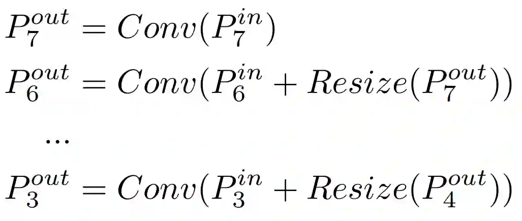 最后,与只有一条自上而下和自下而上路径的 PANet 不同,研究者将每个双向路径(自上而下和自下而上)作为一个特征网络层,并多次重复同一个层,以实现更高级的特征融合。