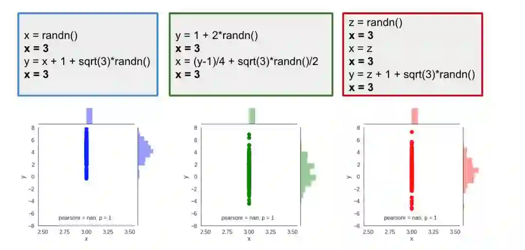 尽管这三个脚本产生了相同的分布,但却不尽相同。例如,当我们干预时,它们的行为会有所差异。