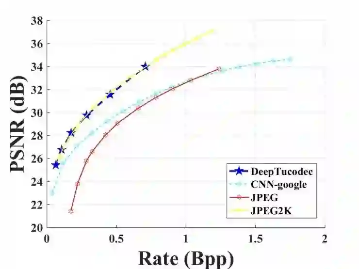 通过深度学习技术设计压缩算法的目的之一是学习一个比离散余弦变换或小波变换更优的变换,同时借助于深度学习技术还可以设计更简洁的端到端算法,因而能够设计出比 JPEG2000 等商用算法性能更优的算法。