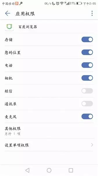 百度:“我们主要用的就是读手机状态(READ_PHONE_STATE),看看手机还剩多少电量之类的。”