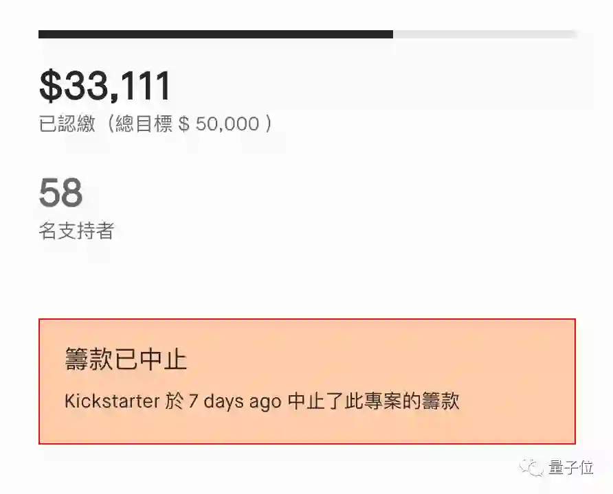 从2月25日众筹发布以来,到3月3日被平台停掉,8天内这个项目已经众筹到了来自58名支持者的33111美元,距离目标还有16889美元,还差三分之一就能完成众筹了。