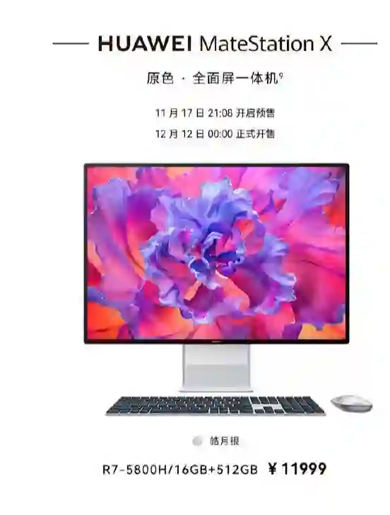 华为 MateStation X 最高搭配 AMD R7 处理器,其 R7-5800H/ 16GB + 512GB 售价 11999 元。