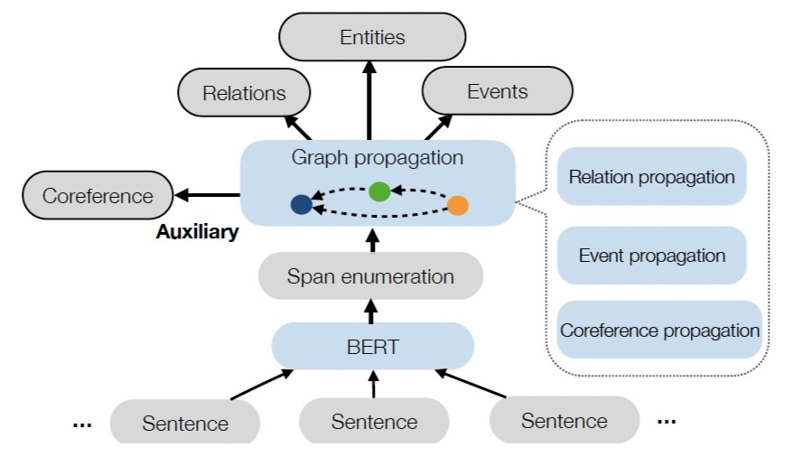 [66] Wadden, D., Wennberg, U., Luan, Y., & Hajishirzi, H. (2019). Entity, relation, and event extraction with contextualized span representations. arXiv preprint arXiv:1909.03546.