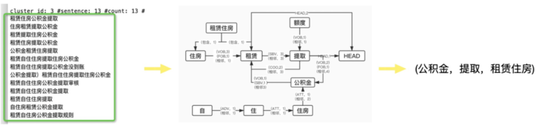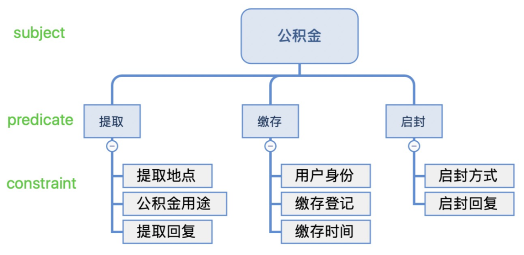 因此,算法最终要从问句中抽取出 subject, predicate 和 constaint 三部分,分别对应前述例子中的 “公积金”,“抽取”和 “租赁住房”。