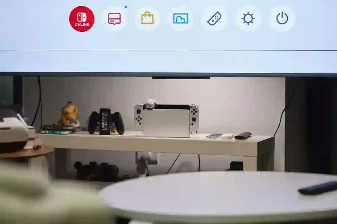 配色的改变也是 OLED 版 Switch 与普通版的另一大区别。OLED 版 Switch 将基座从黑色改成了白色,将它摆在电视旁边,素雅的白色与黑色的电视也能形成黑白搭配,与其自身的黑白配色保持了很好的一体性。不得不说,配色的确可以改变用户对于产品的感觉,黑白配色为 Switch 赋予了科技产品所应有的现代感,也最终促使我加入了 Switch 大军。