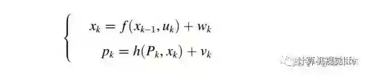 为k时刻可以观测到的所有3D路标点集,h在这里对应相机投影模型, 为k 时刻对路标点集 的观测,观测值为 ,观测噪声为 ,即k时刻3D路标点集