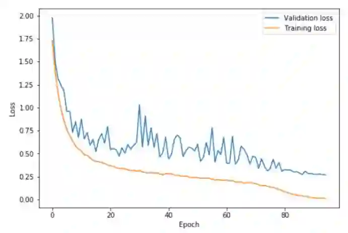 在这里,学习率变化的两个步骤在 42 个 epoch 中结束,剩下的训练过程中使用缓慢递减的学习率。这时验证误差不再下降,进而出现了越来越严重的过拟合现象,同时,准确率基本没有提升。