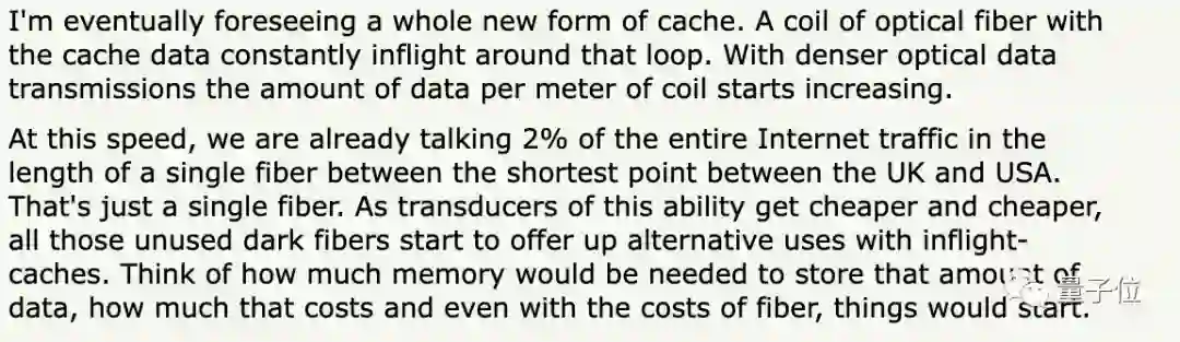 这可能会引导出一种全新的缓存形式,数据将不断围绕着一圈光纤飞速传播。