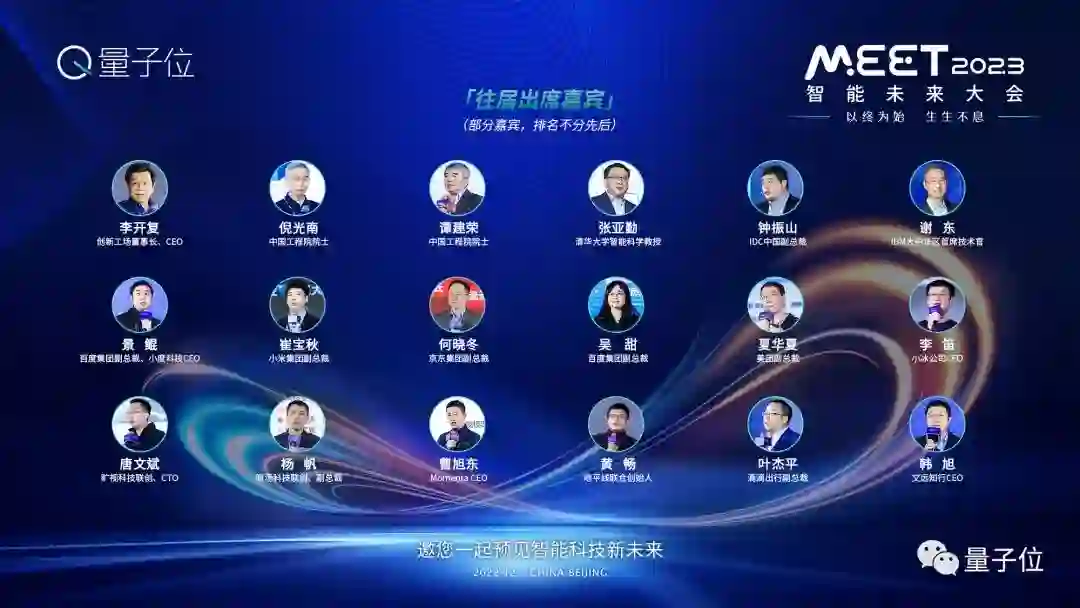今年12月,MEET2023智能未来大会将再度邀请智能科技产业、科研、投资领域大咖嘉宾,共同探讨人工智能行业破局之道。