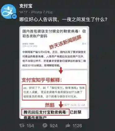 最奇葩的是,吃瓜群众研究了一圈儿,发现“微信病毒”和“支付宝病毒”竟然TMD是同一个病毒。。。