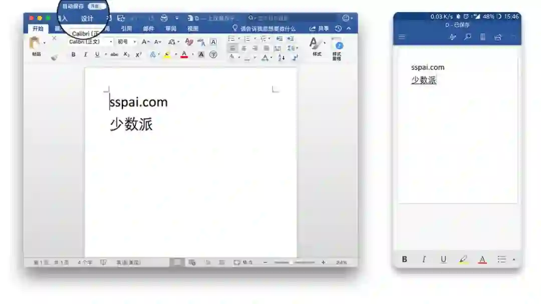 午饭过后,倦意袭来。写论文之前先睡一下午才是一个热爱学术的年轻人应该做的(实际上是下午要给老师检查)。但电脑还放在办公室,所以我打开手机上的 Word。Office 365 订阅下才有的「自动保存」功能,不仅免除了我忘记保存的烦恼,还让我能够在不同的设备里继续之前的任务。编辑动作基本上能实时展现在所有设备下,高效利用时间将内容写完,再去电脑上修改格式即可。
