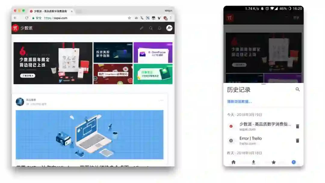 有一件很尴尬的事,似乎是中午吃的东西有些不干净。肚子痛到不行的我只能丢下还没有看完的少数派文章,带上手机、打开 Chrome,刚刚看的网站就同步到手机端。让我在如厕时分也能尽情享受「高品质数字消费指南」的魅力🌚。