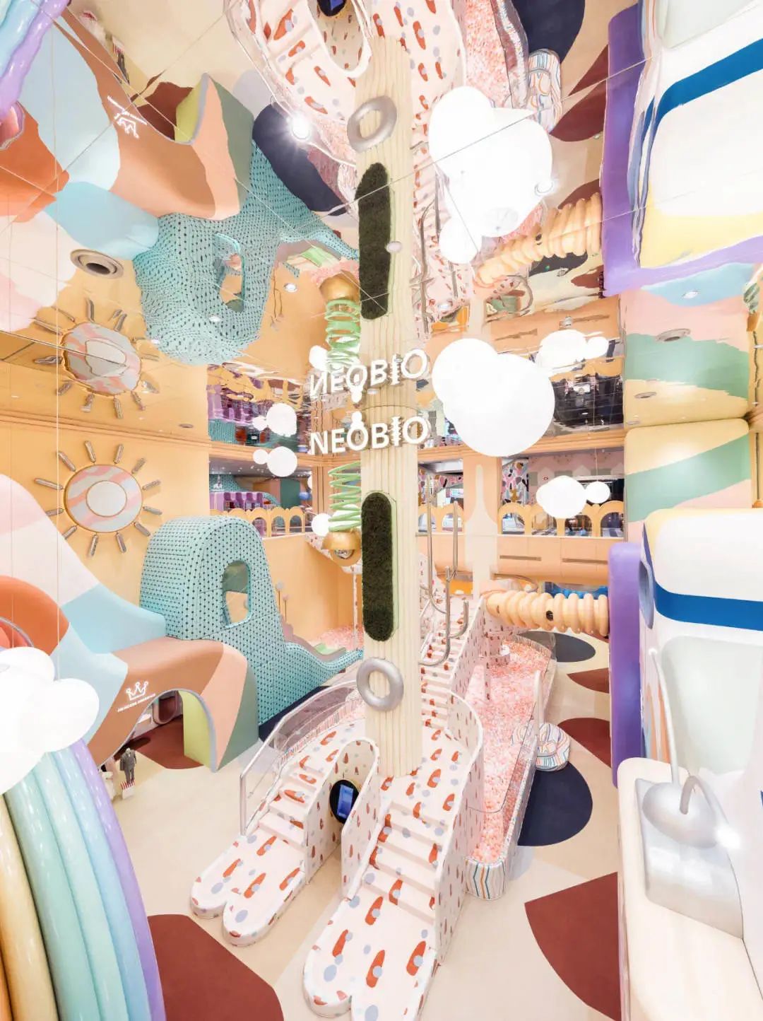 为奈尔宝设计首家门店时,李想尝试将空间包装、游玩设备组合、色彩用度全部调改,每个项目使用色彩组合搭配多达数百种。