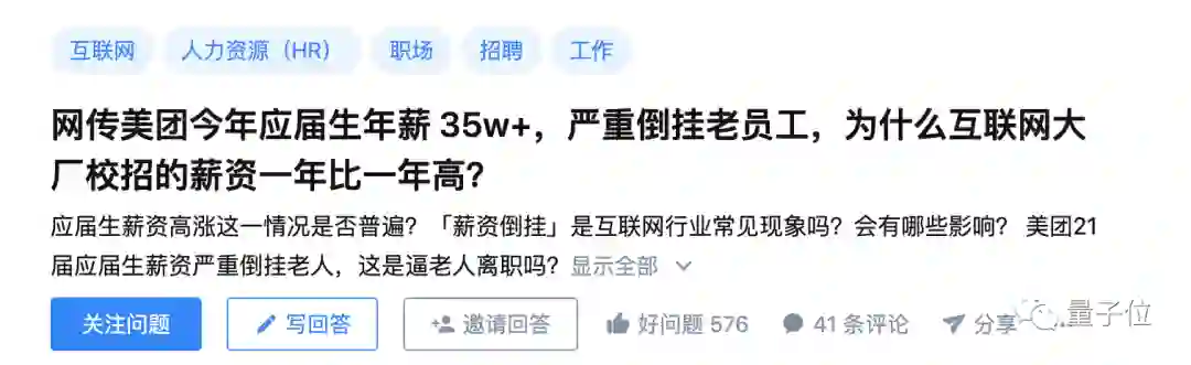 由于知乎热议的问题,提出者只简单直接说「美团应届35w+」,并没有说明数据来源。
